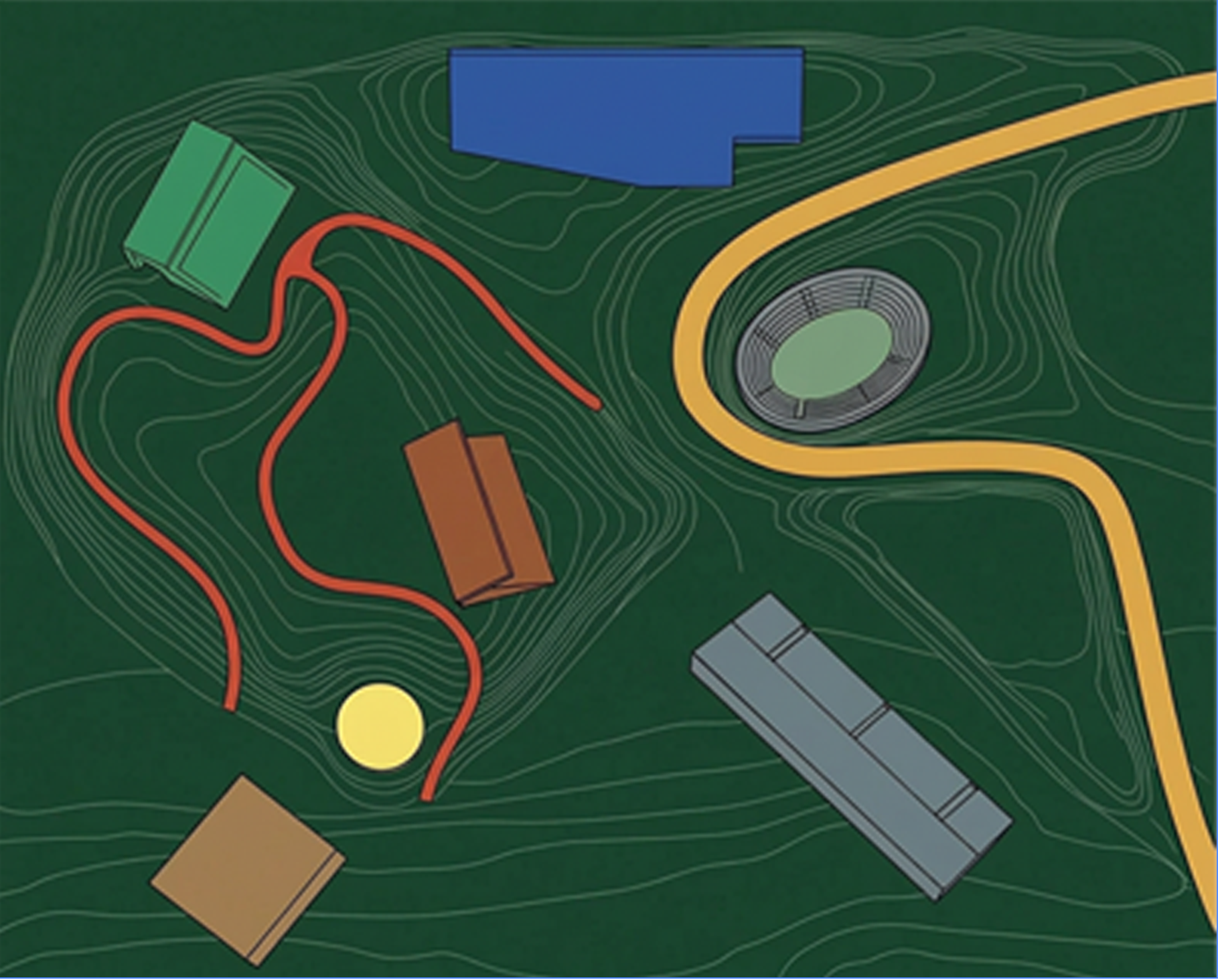 L’observation du site et de ses possibilités évoque le jeu “Serpents et échelles”, fil conducteur du projet.