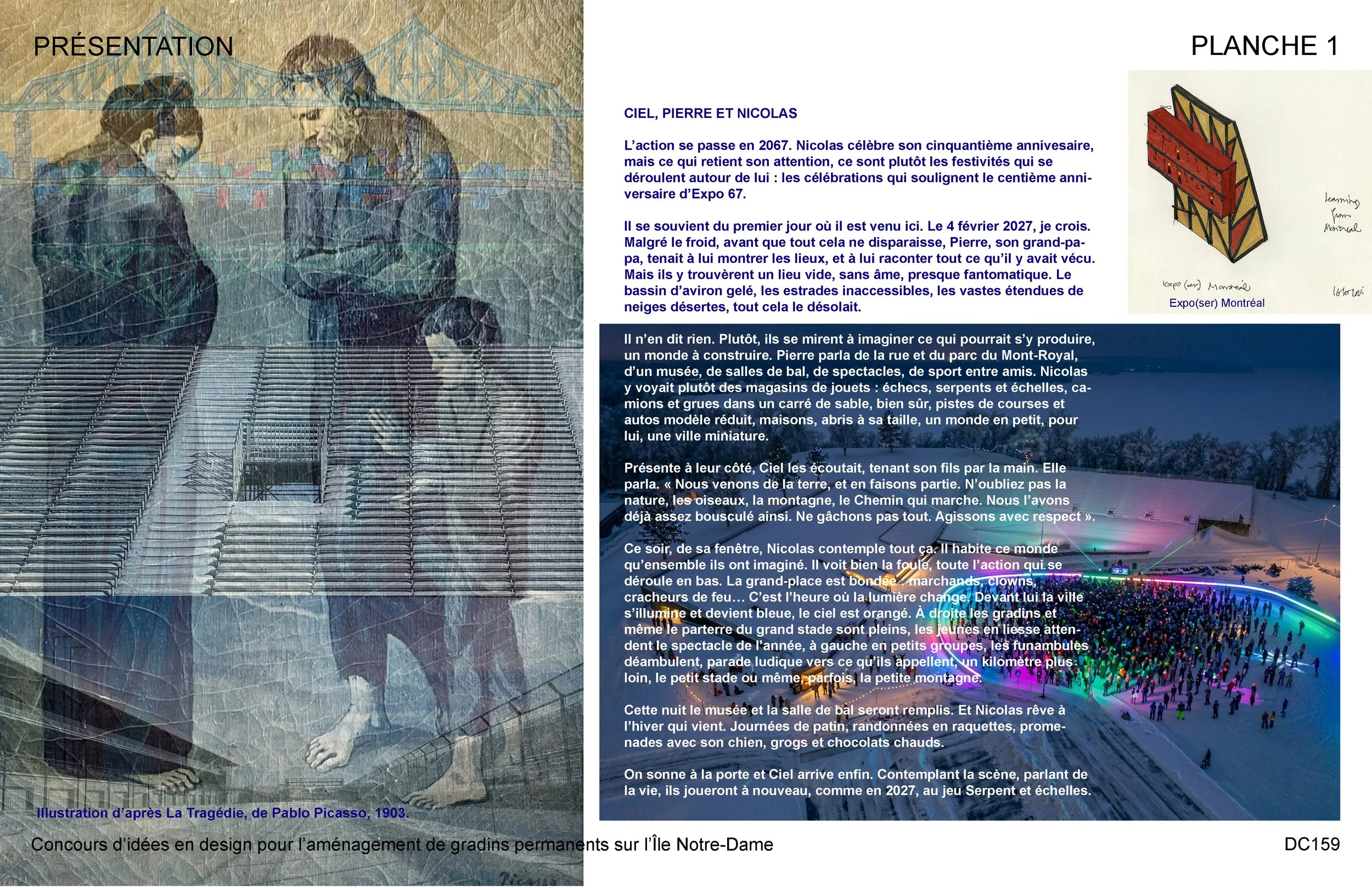 L’action se passe en 2067. Nicolas célèbre son cinquantième annivesaire, mais ce qui retient son attention, ce sont plutôt les festivités qui se déroulent autour de lui : les célébrations qui soulignent le centième anniversaire d’Expo 67.
